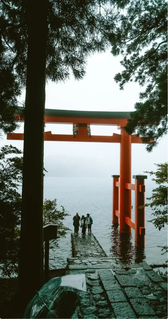 Een andere iconische Hakone bezienswaardigheid is het Ashi meer (Lake Ashi). Het meer is omgeven door weelderige natuur en biedt adembenemende uitzichten op de omliggende bergen, waaronder de iconische berg Fuji aan de horizon. De rust en sereniteit van het meer maken het een ideale plek voor ontspanning.
