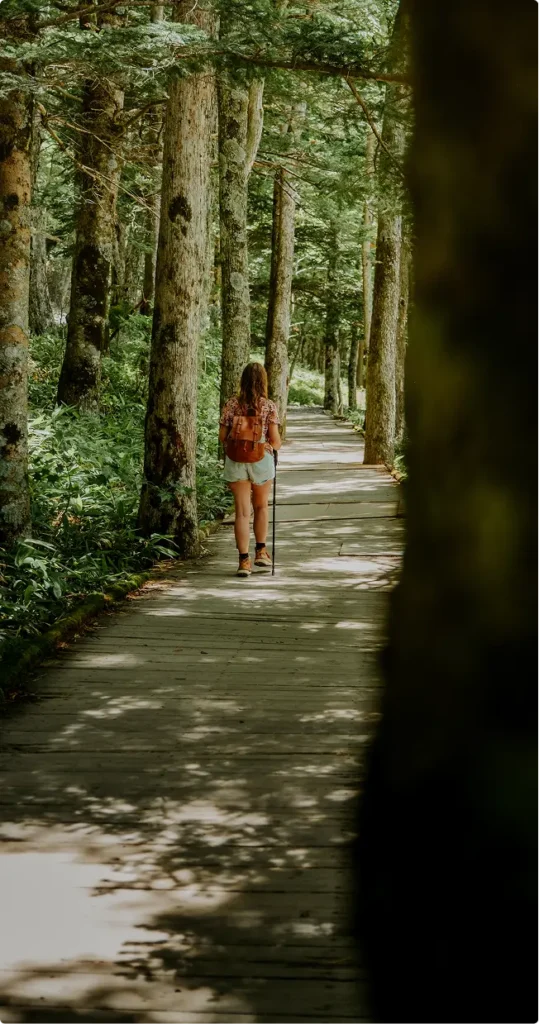 Tip: wanneer je aankomt zie je borden dat er beren voor kunnen komen. Als je op een normaal tijdstip wandelt wanneer er ook andere mensen zijn, zou er niks kunnen gebeuren. Als je echter op een moment gaat wanneer het niet druk is, kun je het beste bij een kiosk bij de bushalte een belletje kopen die je aan je tas verbindt. Deze maakt tijdens het lopen geluid waardoor beren op afstand blijven.