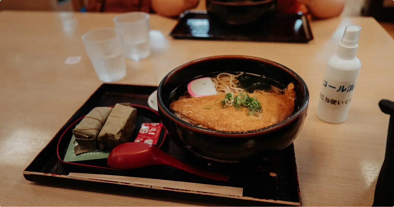 Het beste kun je ontbijten bij de accommodatie waar je verblijft en avondeten in Kyoto of Osaka. Wel is het leuk om in Nara te gaan lunchen. Wij hebben zelf gegeten bij “Tekisui 滴翠”. De plek voelt als een reis terug in de tijd. Zonder reservering kwamen we binnen en dit was geen probleem, wij konden zitten bij de vijver aan het park waardoor wij genoten van een mooi uitzicht.
