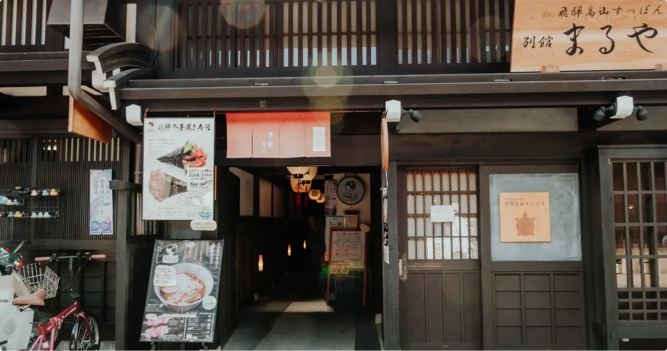 - 飛騨あっぽ: dit kleine zaakje ligt in het historisch centrum in een van de authentieke straten. Deze plek is wat lastiger te vinden, omdat het een klein zaakje is waar je bij de ingang een stukje door een gang moet lopen waardoor je vanuit de straat snel voorbij wandelt. Deze plek is leuk om te bezoeken, omdat ze hier onwijs goede ramen serveren. Je kunt hier traditionele Hida Takayama noodles bestellen. Ook is alles hier traditioneel ingericht waardoor je een leuke ervaring opdoet. Vanwege het feit dat het wat lastiger te vinden is, slaan veel toeristen dit over. Een gerecht kost ¥700/€4.50.