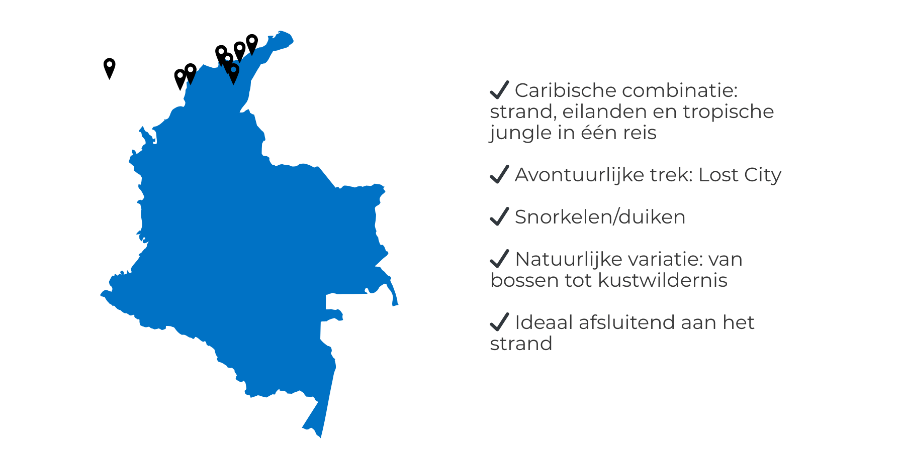 Een vakantie Colombia staat voor ongekende diversiteit, waar koloniale steden, tropische stranden, jungle en bergen samenkomen. Of je nu avontuur, cultuur of ontspanning zoekt, Colombia biedt het allemaal.