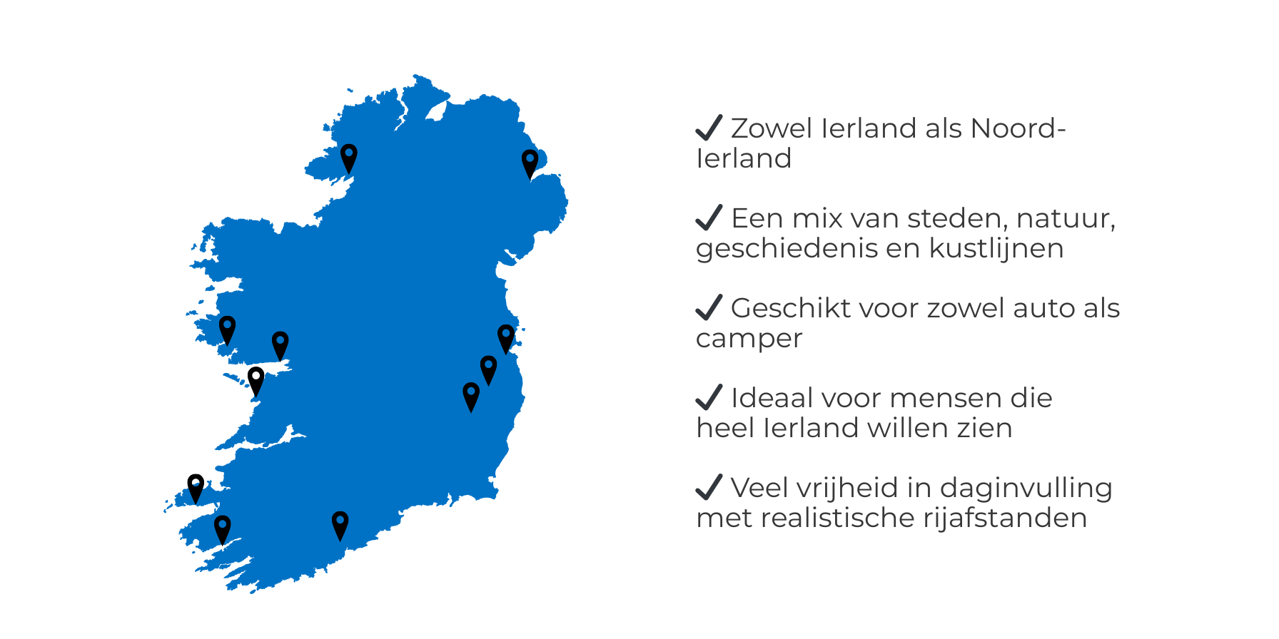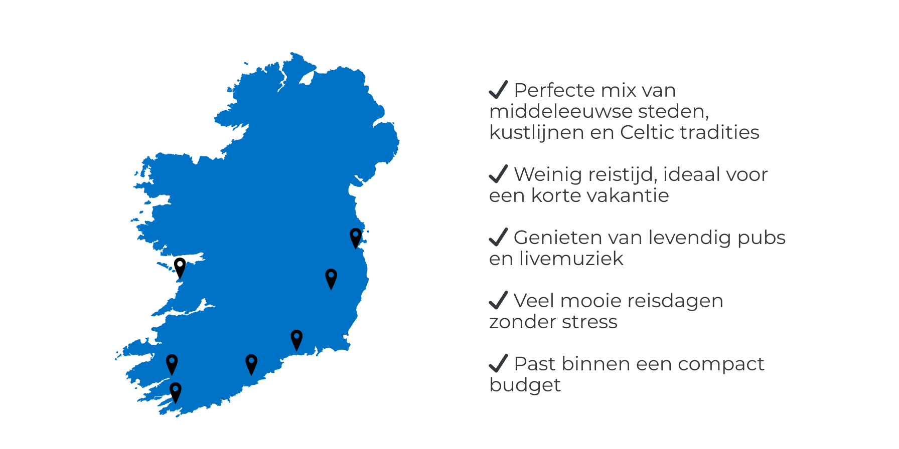 Tijdens een vakantie naar Ierland staat de ongerepte natuur, rijke historie en warme gastvrijheid centraal. Of je nu houdt van bruisende steden, charmante dorpjes of indrukwekkende landschappen, Ierland heeft voor ieder wat wils.