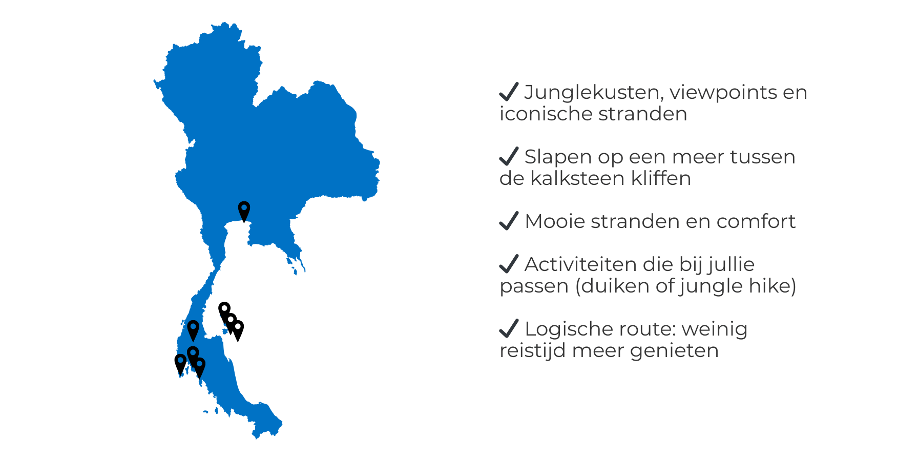 Een reis naar Thailand is een reis waar een exotische natuur, eeuwenoude cultuur en gastvrijheid samenkomen. Of je nu houdt van bruisende steden, serene tempels of adembenemende stranden, Thailand heeft voor ieder wat wils.